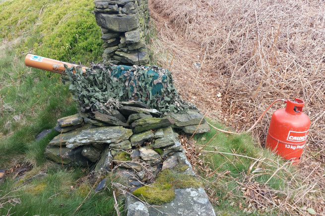 Gas guns are placed on grouse moors by gamekeepers, ostensibly to discourage corvids but more likely to disrupt raptor nesting. Gas guns fire off loud intermittent shots, which disrupts the nesting behaviour. Gas guns have been found on Broomhead, Langsett and Axe Edge, amongst other places.