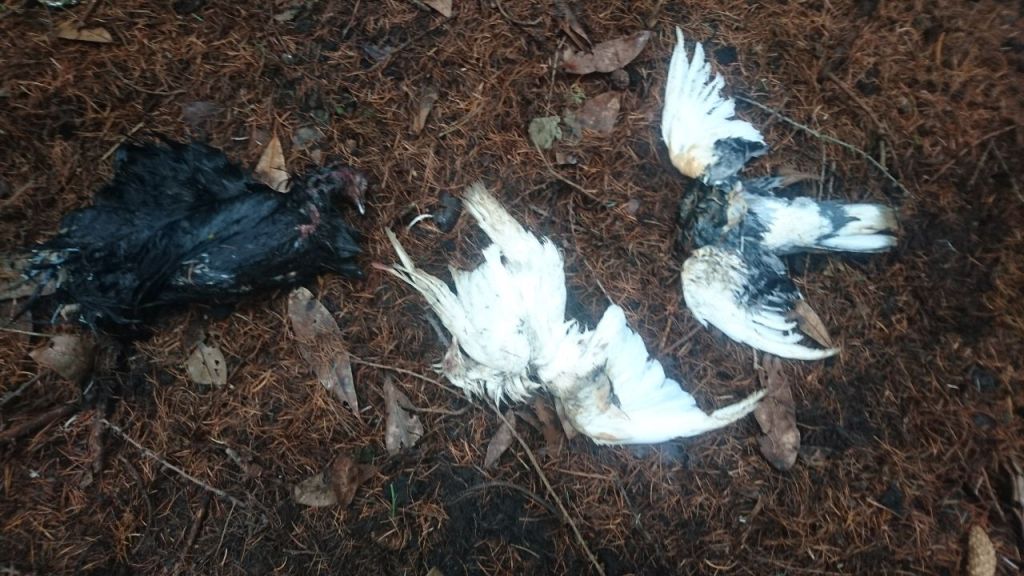 Strewn bird carcasses in snare site